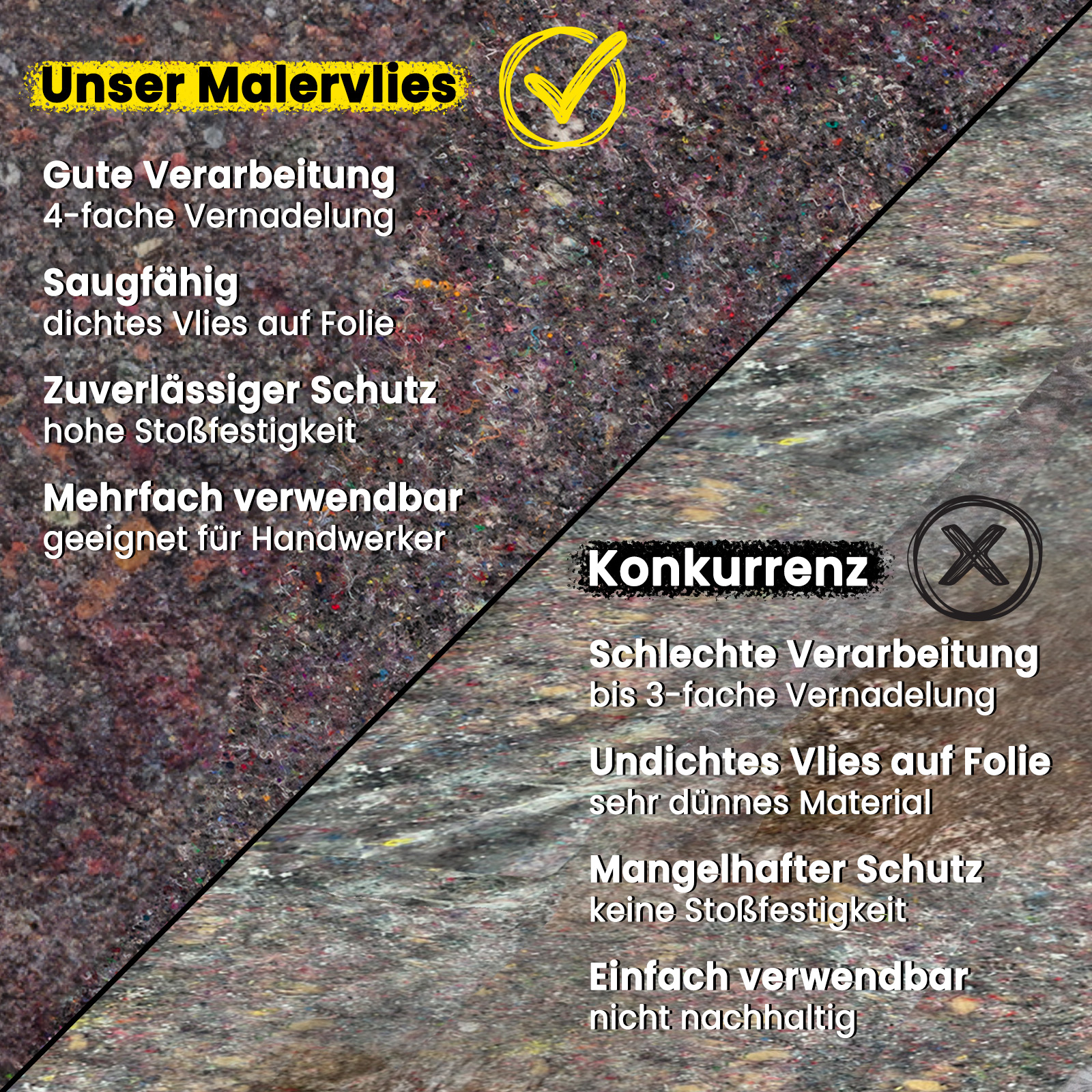 - Malervlies vor Feuchtigkeit schützen, um Stabilität zu gewährleisten.